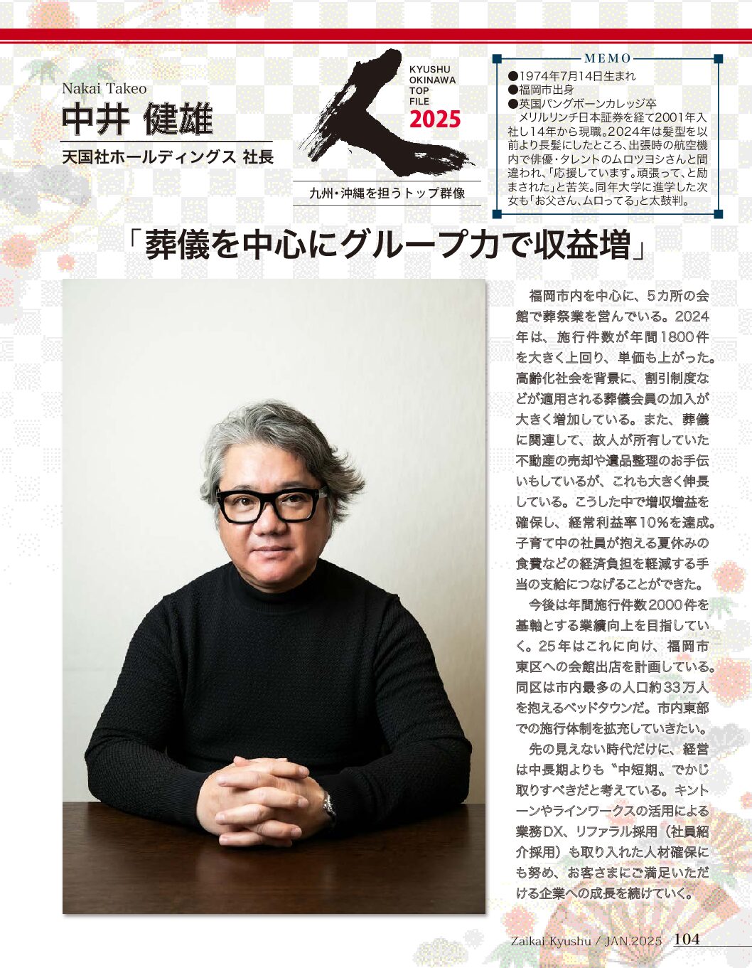 中井健雄社長が月刊誌『財界九州』にて特集されました