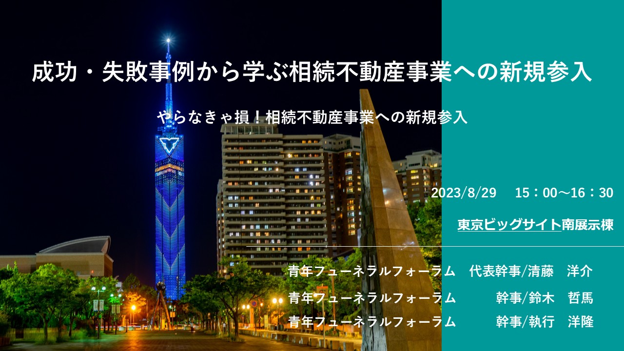 天国社からのお知らせ 福岡の葬儀社「天国社」 天国社からのお知らせ お知らせ エンディング産業展で講演を行いました エンディング産業展で講演を行いました 2023.09.04 お知らせ 2023年8月29日から31日まで、東京ビッグサイト南展示棟で開催される第9回「エンディング産業展」が開催されました。 今回は青年フューネラルフォーラム幹事である執行専務による「成功・失敗事例から学ぶ相続不動産事業への新規参入」についての講演を行いました。 ※エンディング産業展とは、葬儀・埋葬・供養・相続など終活に関する製品や技術、サービスが一堂に会するイベントとなっており、葬儀社をはじめ、生花店や寺院関係者といった終活産業にかかわる様々なビジネス関係者が参加しております。 些細と思われる事も、お気軽にご連絡ください。 24時間365日対応・通話無料 電話をかける メールでご相談 無料資料請求 戻る カテゴリー 新着情報 お知らせ イベント情報 葬儀の知識 福岡の葬儀情報 家族葬について お客様の声 ご葬儀事例一覧 年別アーカイブ 2025年 2024年 2023年 2022年 2021年
