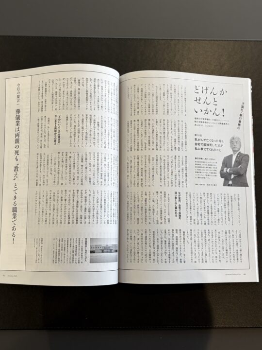 天国社からのお知らせ 福岡の葬儀社「天国社」 天国社からのお知らせ お知らせ 月刊終活2026年1月号のお知らせ! 月刊終活2026年1月号のお知らせ! 2026.01.01 お知らせ 執行専務の連載コラム「どげんかせんといかん!」 葬儀業界のあんなコト、こんなコトをぶっちゃけます。 第9回目のテーマは「乳がんで亡くなった母と自宅で孤独死した父が私におしえてくれたこと」 新年号という事もあり、いつもとは趣向を変えて自分の両親死という経験について語っております。 些細と思われる事も、お気軽にご連絡ください。 24時間365日対応・通話無料 電話をかける メールでご相談 無料資料請求 戻る カテゴリー 新着情報 お知らせ イベント情報 葬儀の知識 福岡の葬儀情報 家族葬について お客様の声 ご葬儀事例一覧 年別アーカイブ 2026年 2025年 2024年 2023年 2022年 2021年