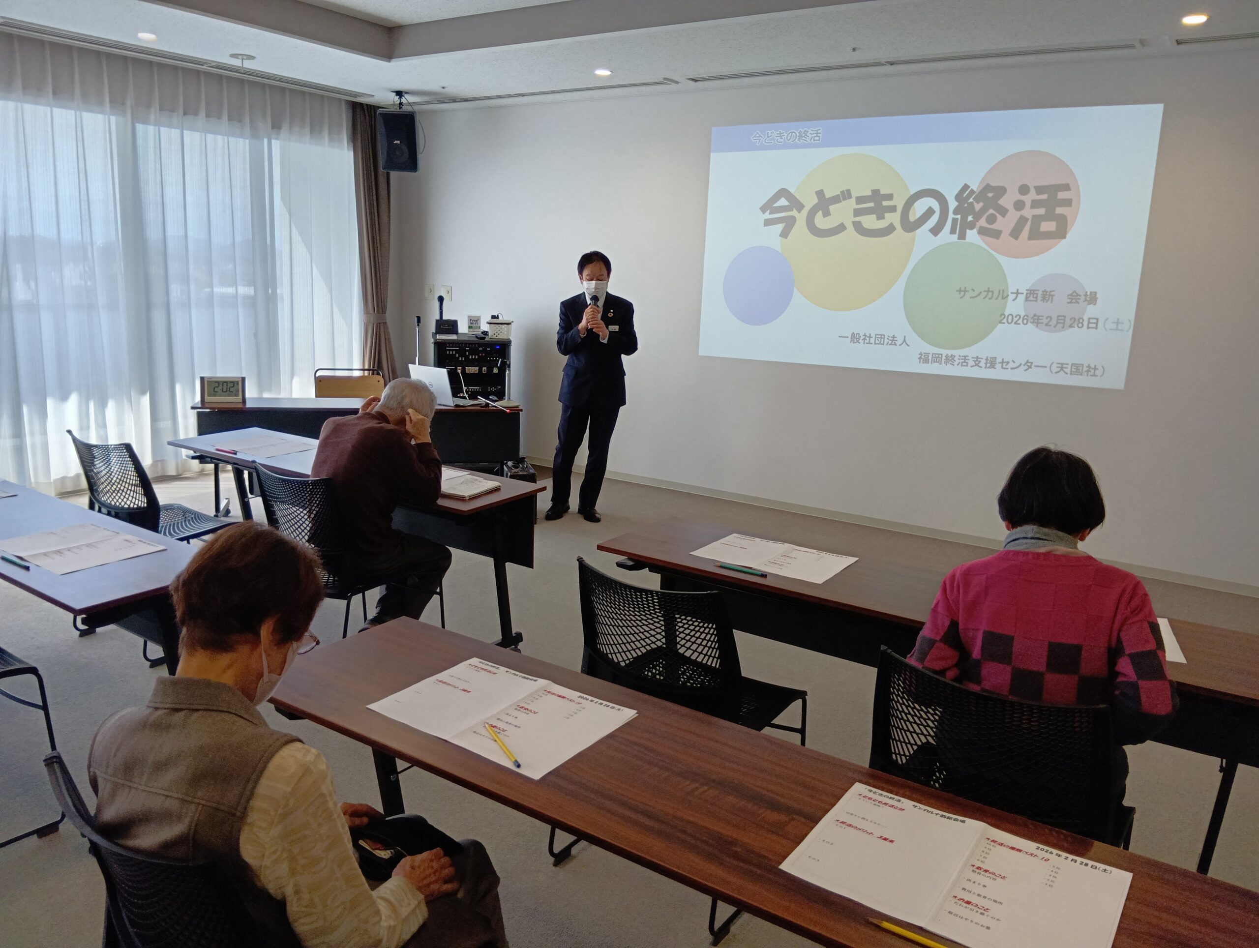 天国社からのお知らせ 福岡の葬儀社「天国社」 天国社からのお知らせ お知らせ 終活セミナーを開催致しました 終活セミナーを開催致しました 2026.02.28 お知らせ 本日、サンカルナ西新にて「終活セミナー」を開催致しました。次回4月以降に第二弾開催予定となっております。 些細と思われる事も、お気軽にご連絡ください。 24時間365日対応・通話無料 電話をかける メールでご相談 無料資料請求 戻る カテゴリー 新着情報 お知らせ イベント情報 葬儀の知識 福岡の葬儀情報 家族葬について お客様の声 ご葬儀事例一覧 年別アーカイブ 2026年 2025年 2024年 2023年 2022年 2021年